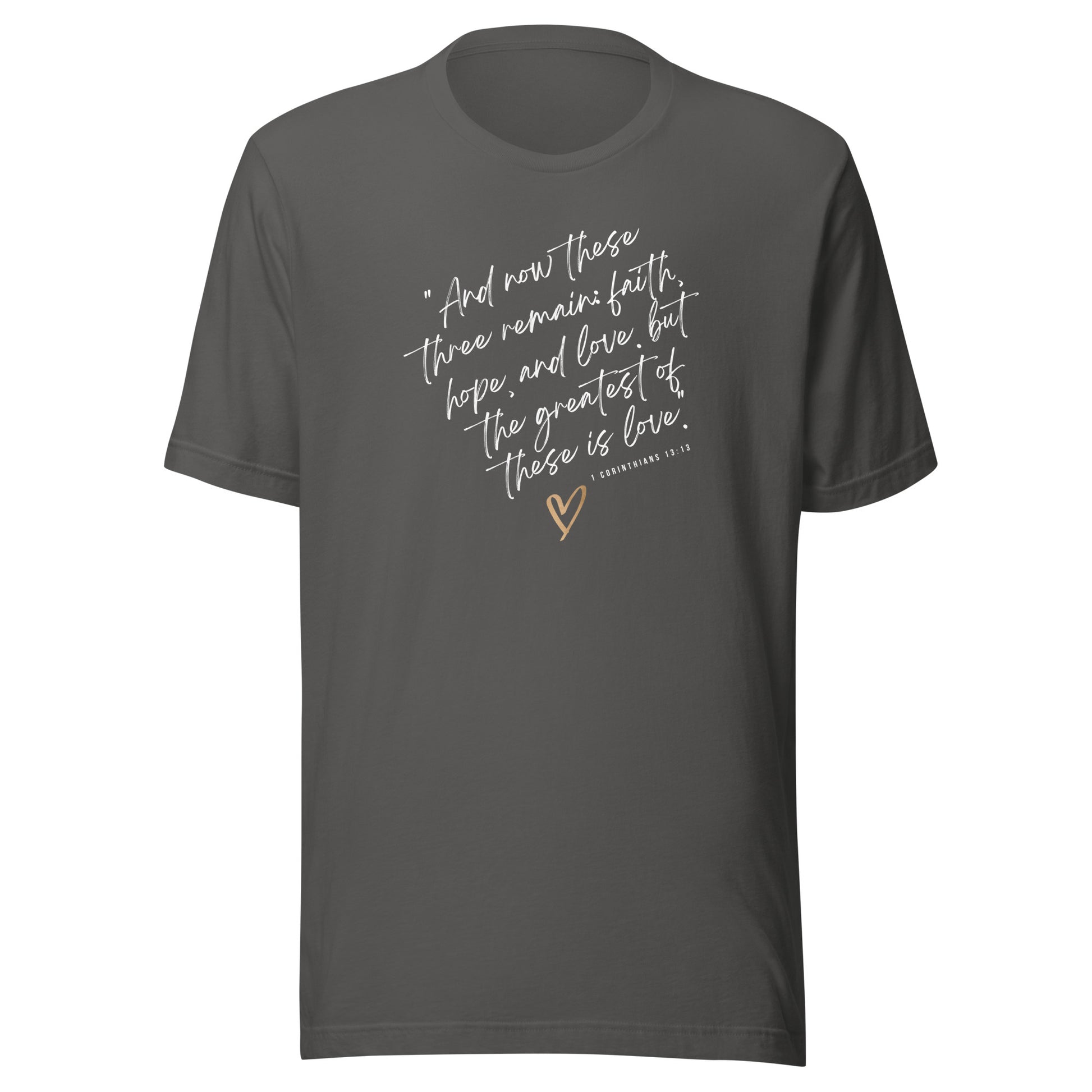 Celebrate the enduring power of love, the unwavering strength of faith, and the everlasting hope that transcends all. Wear your beliefs with pride and let this shirt be a reminder that love, faith, and hope are the foundation of a fulfilling life.