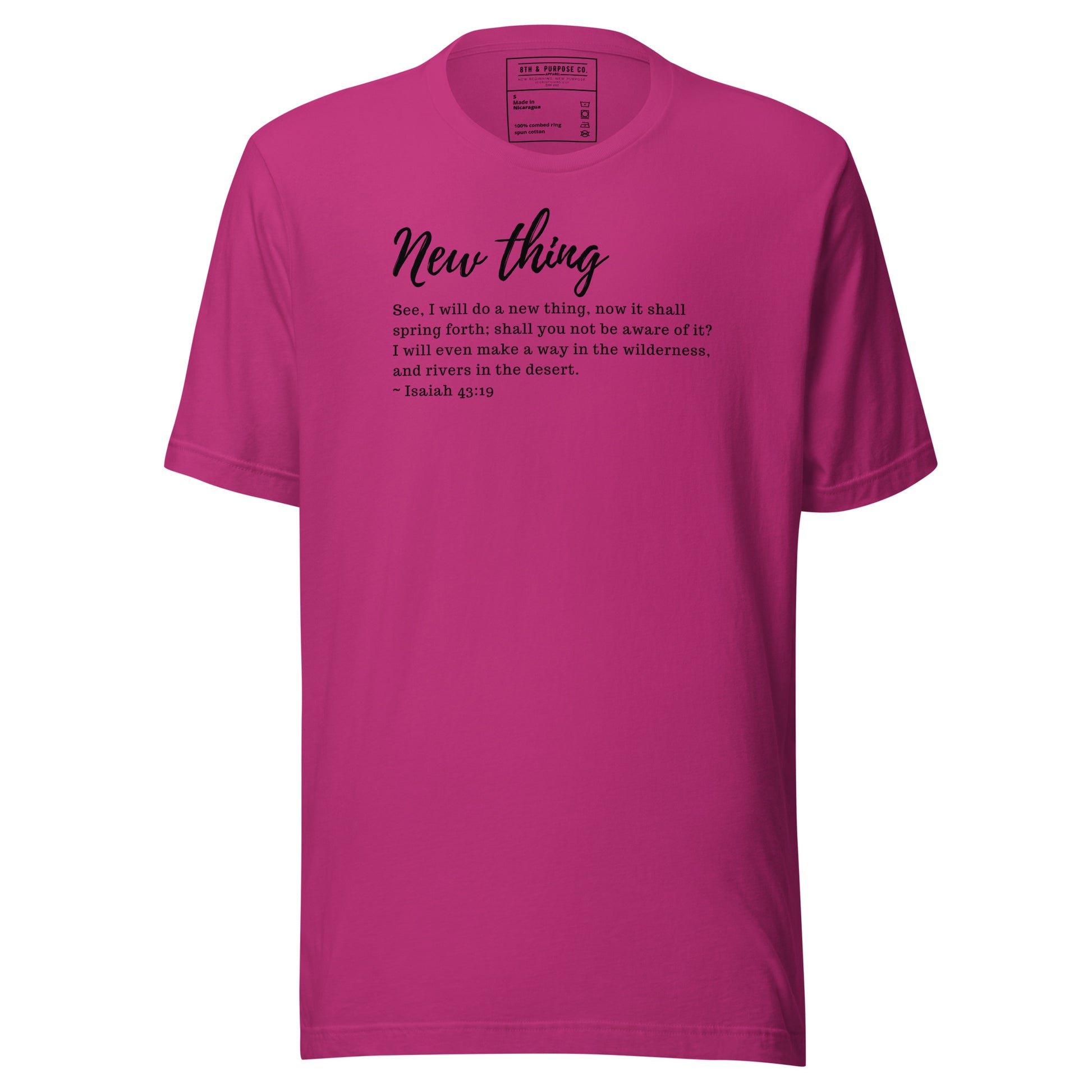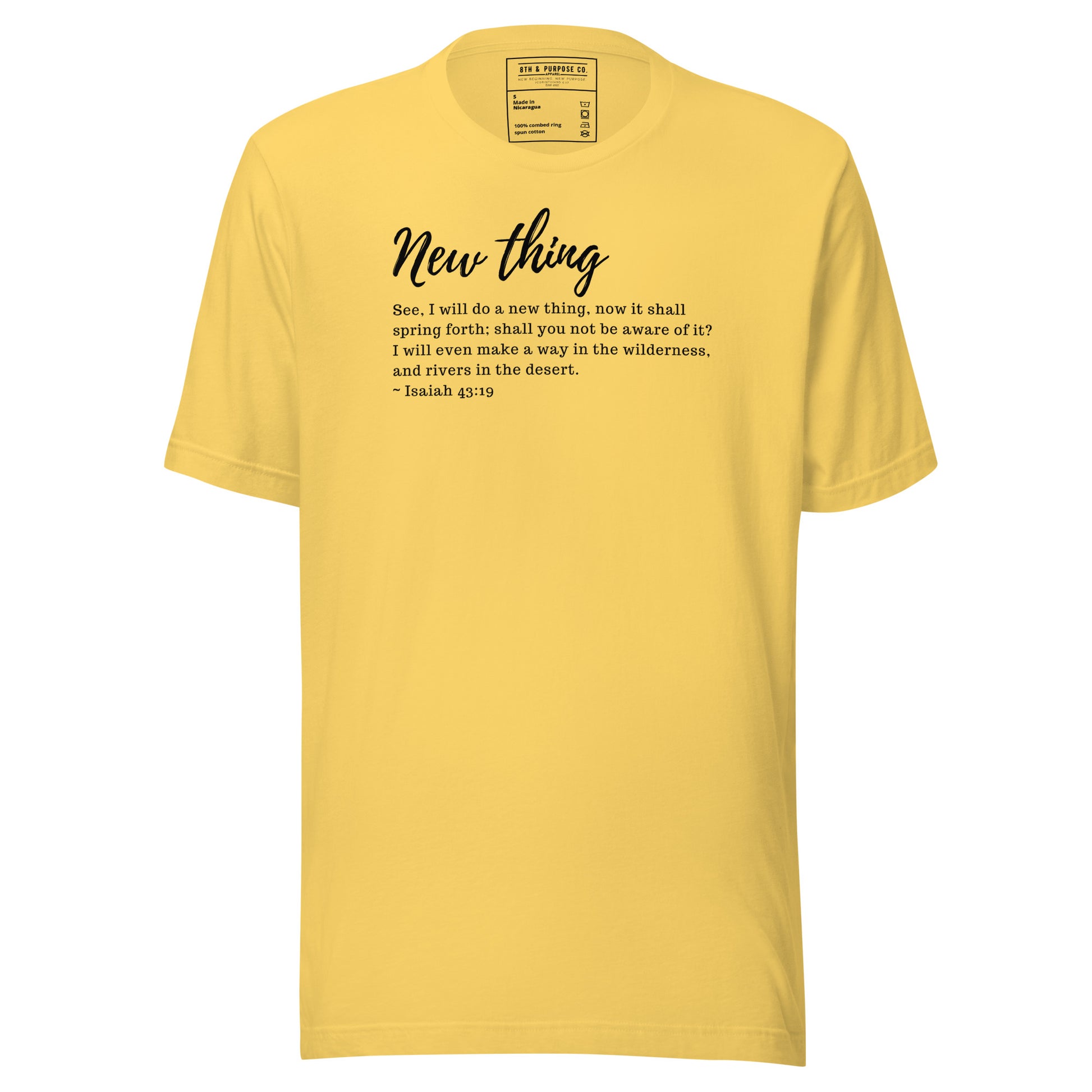 Step into a new season with our Isaiah 43:19 t-shirt! This scripture-driven design encapsulates the promise of God's transformative power, reminding you that He is always at work, making a way in the wilderness and streams in the desert. Embrace the fresh beginnings and the renewal of spirit that come with each wear. Let this verse be a source of inspiration as you embrace the journey of growth and transformation.
